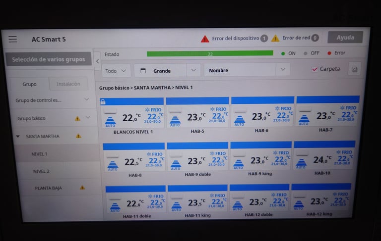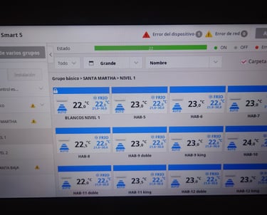 Aire Acondicionado tipo VRF en Hotel de 40 habitaciones con control centralizado para el monitoreo y control de cada unidad interior.